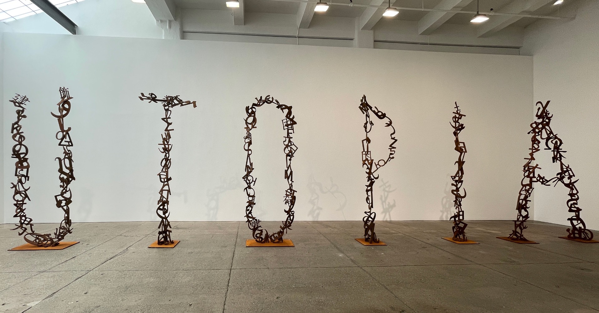 New drawings referencing influential poets will be on view, complemented by a selection of sculptures, the forms of which are comprised of characters from various alphabets, highlighting language and poetry as recurring sources of inspiration in the artist’s practice."